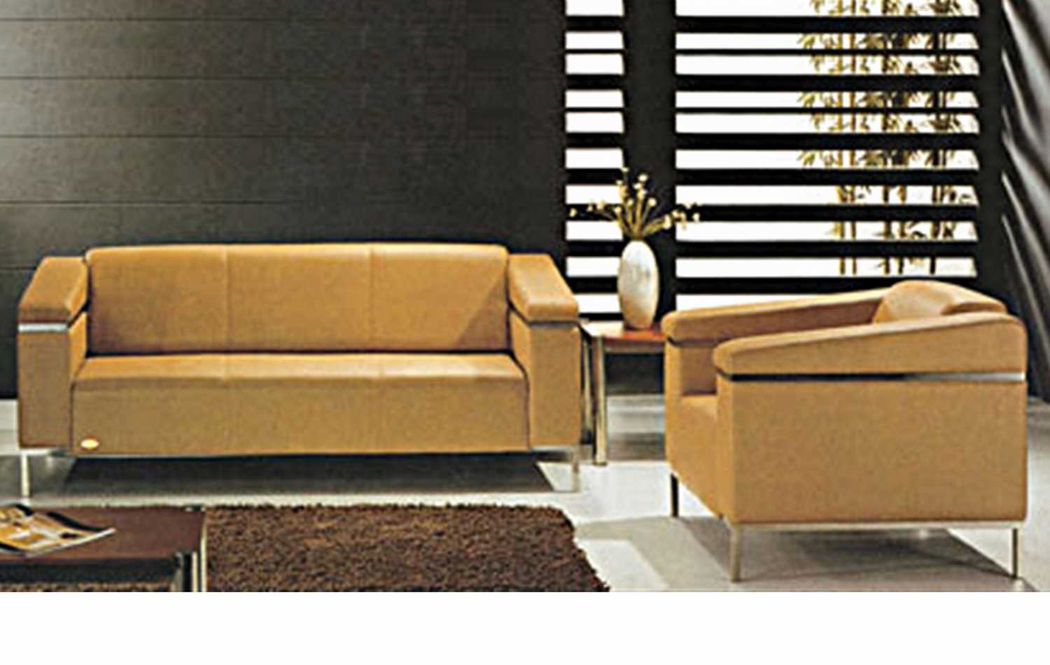 Description This modern sofa set is made with a black genuine leather upper and a scratch resistant back and incorporates a contemporary solid mahogany armrest. It is ideal for any reception or corporate office and can be bought separately.