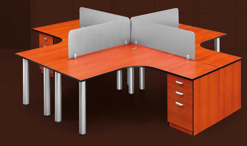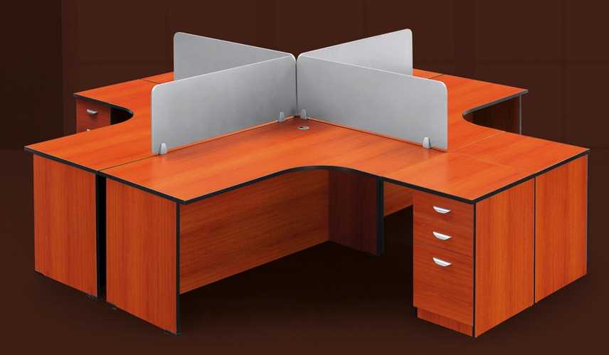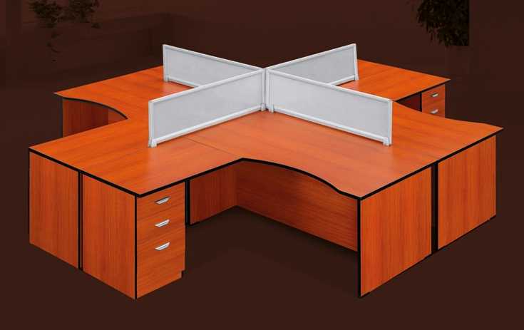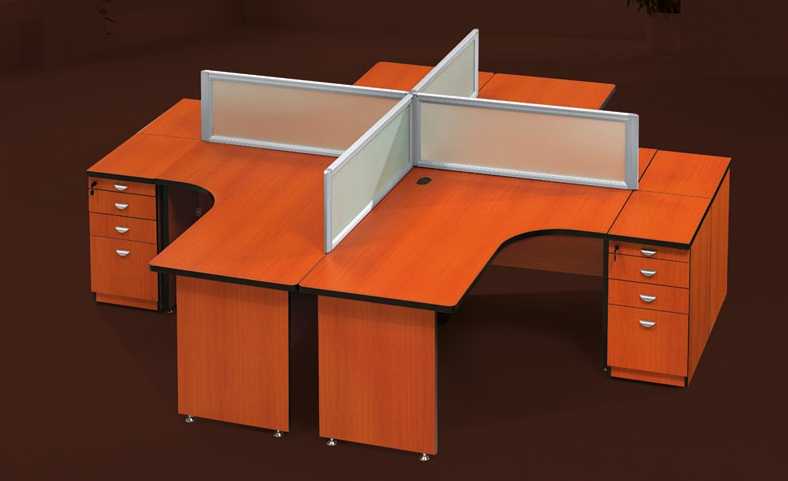 Description The melamine four way cluster desk is very simple in design available in three different colours. It has a 32mm desk top. The mobile desk height pedestal consists of two standard drawers and one deep filer drawer. Dividers sold separately.