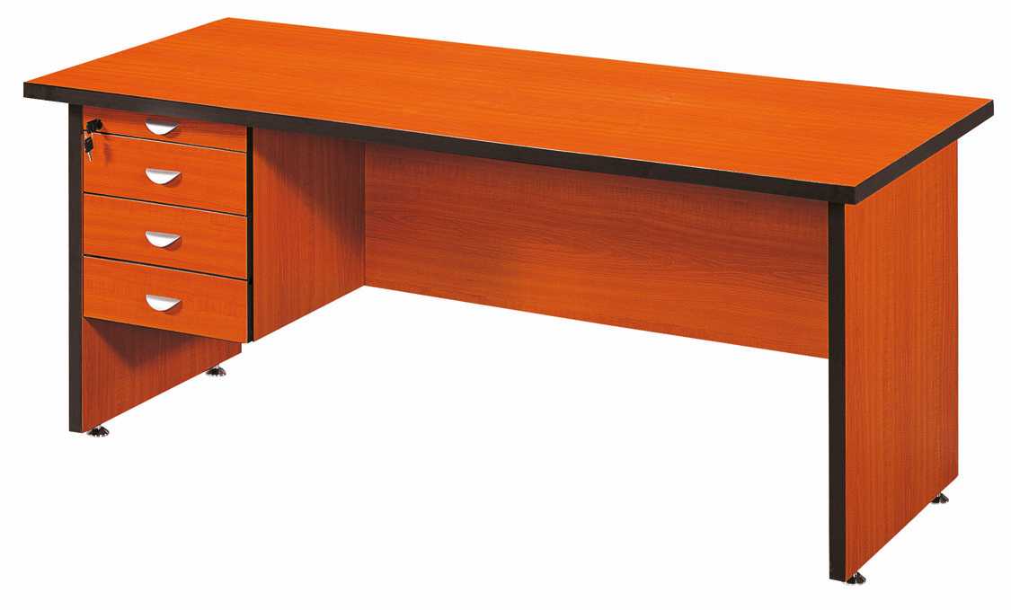 Description The melamine desk shell has a basic design available in three different colours. It has a 32mm desk top and panel legs and it has a fit in pedestal consisting of one pencil tray and tree standard drawers all with central locking. Fit in Pedestal #JA002A sold separately.