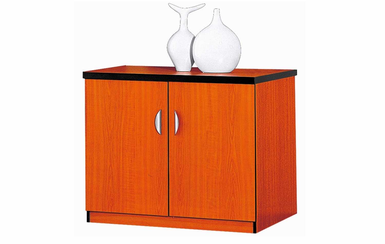 Description The free standing melamine credenza has two hinged doors and an internal shelf for storage.