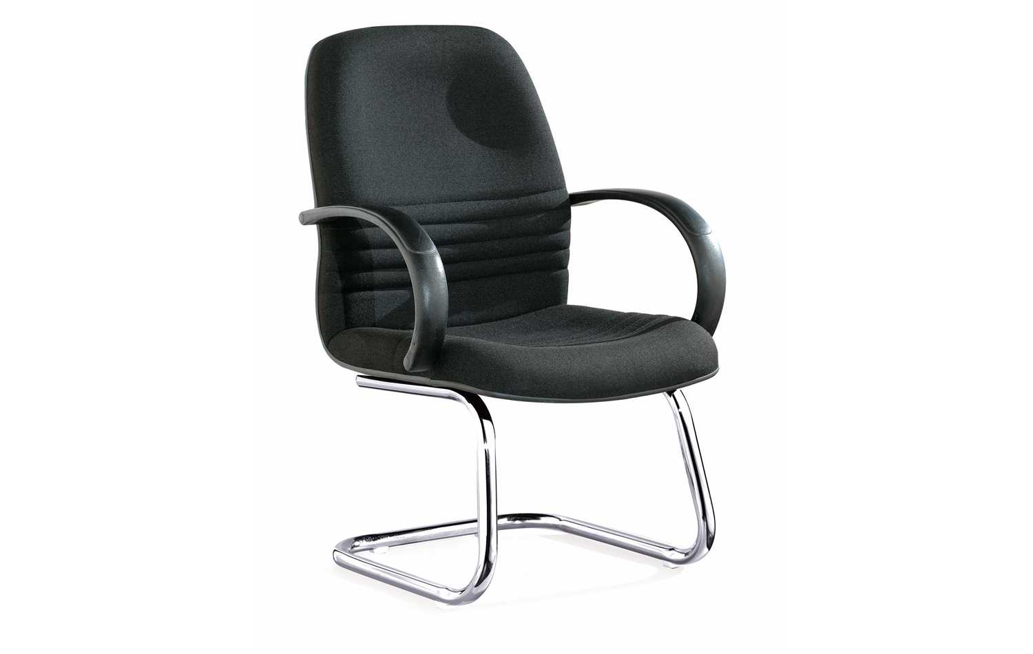 Description Fabric visitors chair with plastic armrests and chrome sleigh base, one piece shell. Also available in High Back #DB053 and Medium Back #DB053B.