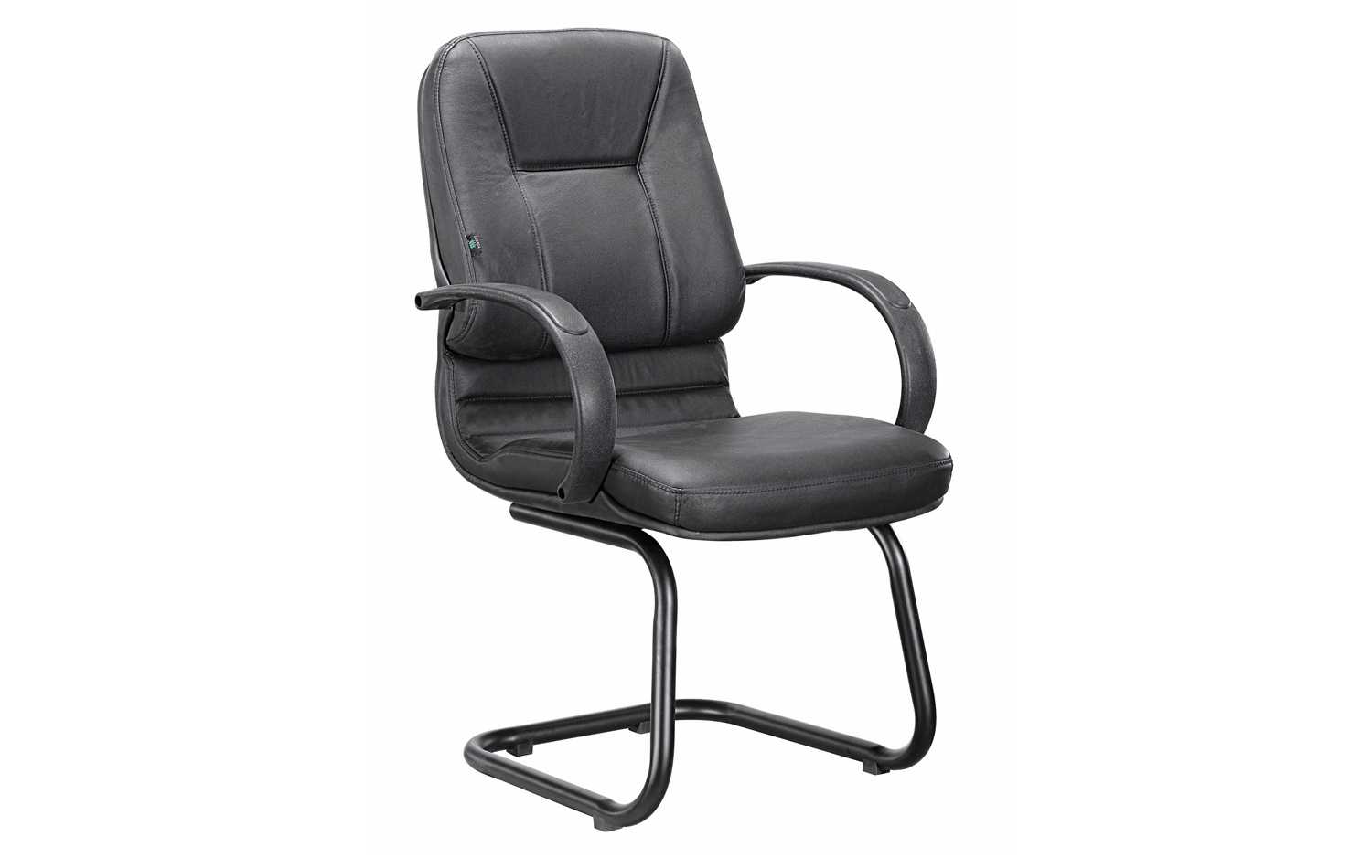 This economic Genuine leather chair consists of black plastic armrests and black mat sleigh base. Its also scratch protected.